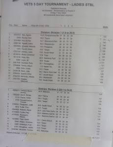 1 Aven Schroder (Feilding) 150, 2 Pam Charlesworth ((Hawkestone) 139, 3 Jenny Chen (Whitford Park) 135, 4 June Churchill (Linton Camp) 133, 5 Edith Leary (Rangitikei) 132, 6 Maggie McMinn (Castlecliff) 128
