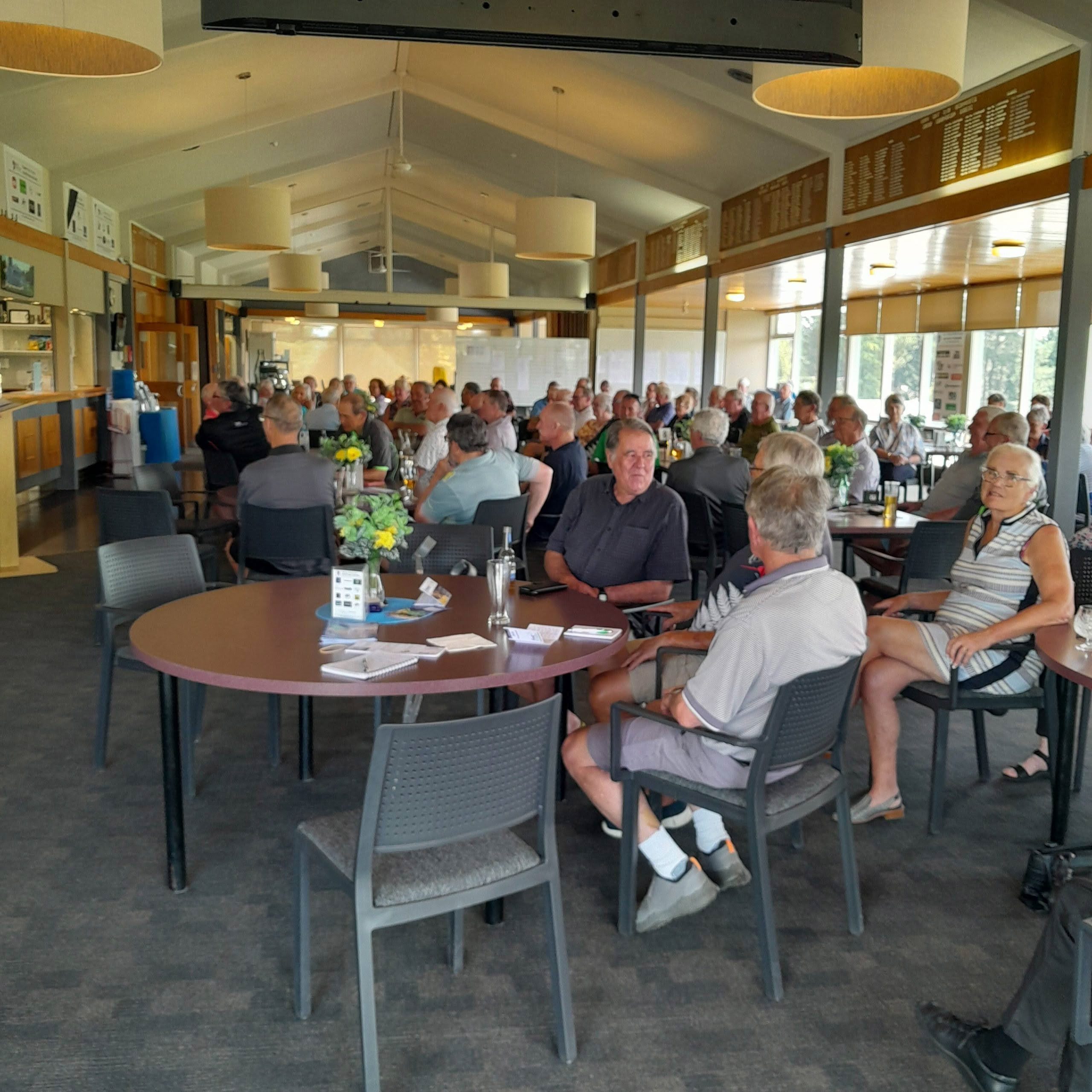 116 players were treated to a great course with an exciting tournament. The weather did play its part, sunny day q1, damp day 2. Very generous prizes, made extra special by club members sponsoring the nearest the pins , for your effort your received $100. well worth going for! The whitebait raffles were also very popular. The meal on the Monday evening was well supported, as was the karaoke.