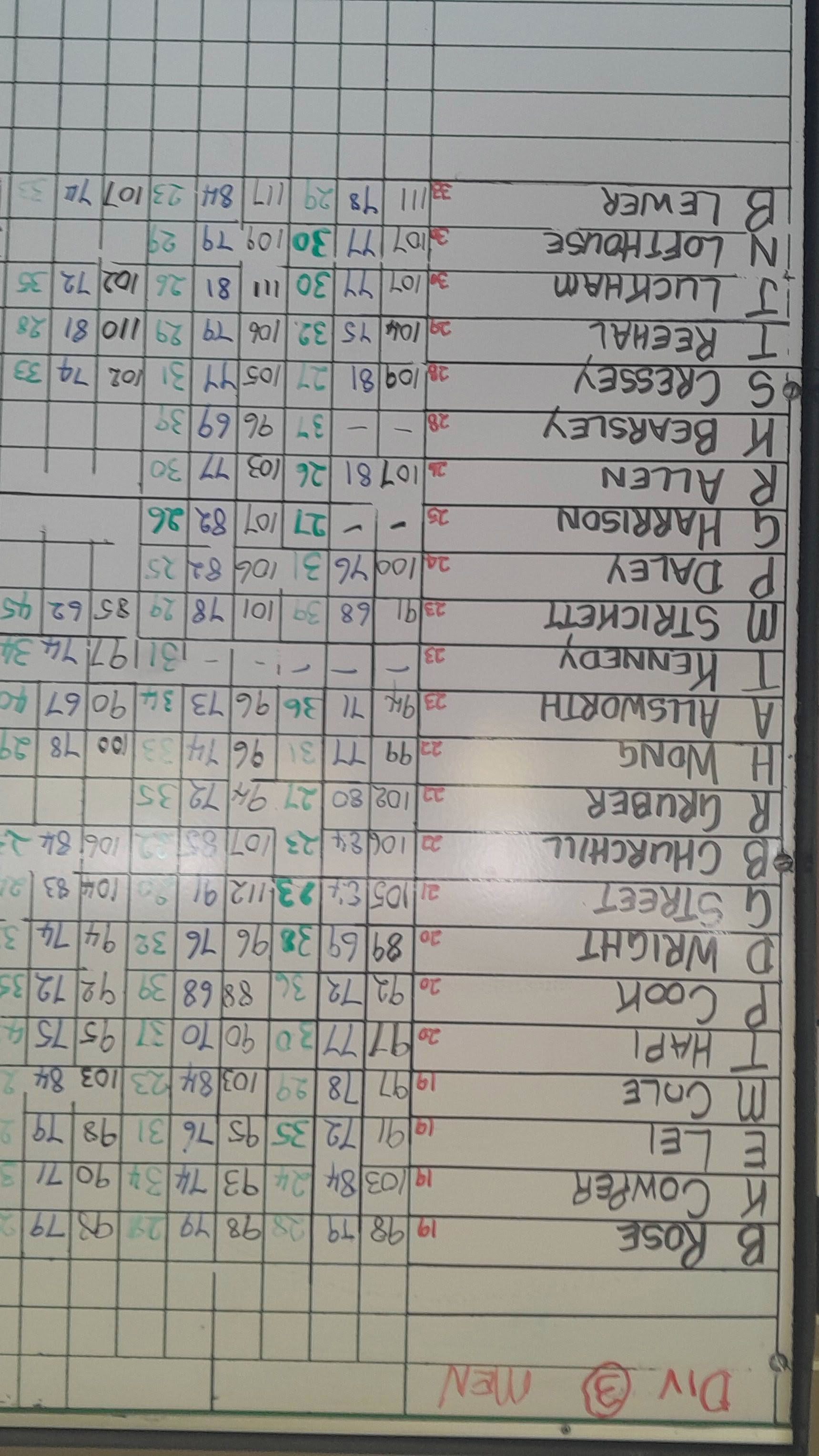 Men: Div 1 – Ken Dixon 136, Div 2 – Don Mackay 132, Div 3 – Alan Allsworth 132